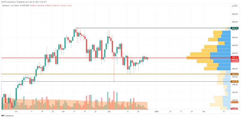Ethereum (ETH), 4.050 dolarla en likidite bölgesinin çevresinde yer alıyor. Yayay seyir, düşük ticaret hacmiyle de onaylanıyor, bu da ana altcoinin daha keskin bir hareket için yeterli enerjiyi biriktirmediği anlamına geliyor.
