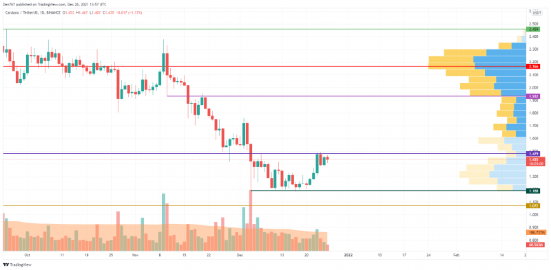 Cardano (ADA), üçüncü kez dirence 1,479 dolardan yaklaşıyor. Boğalar bunu kırmayı ve yukarıyı düzeltmeyi başarırsa, yükseliş en yakın bölgeye 2 dolardan devam edebilir. Ancak, alıcıların daha fazla fiyat artışı için daha fazla güç toplaması gerektiğinden, böyle bir senaryo önümüzdeki birkaç hafta içinde gerçekleşebilir.
