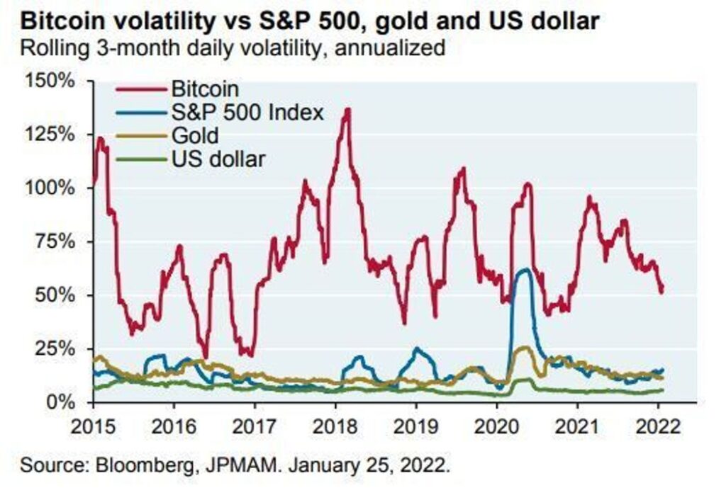 Bu arada Bitcoin oynaklığı, hisse senedi piyasalarındaki hareketi takip ederek “gülünç derecede yüksek olmaya devam ediyor”.